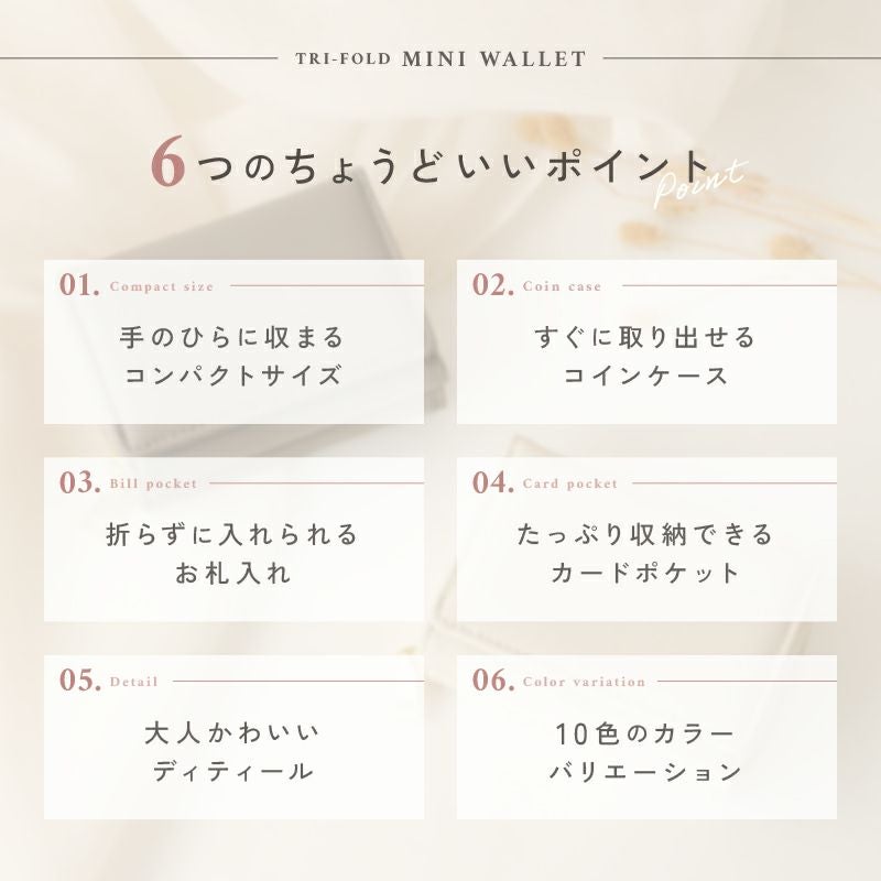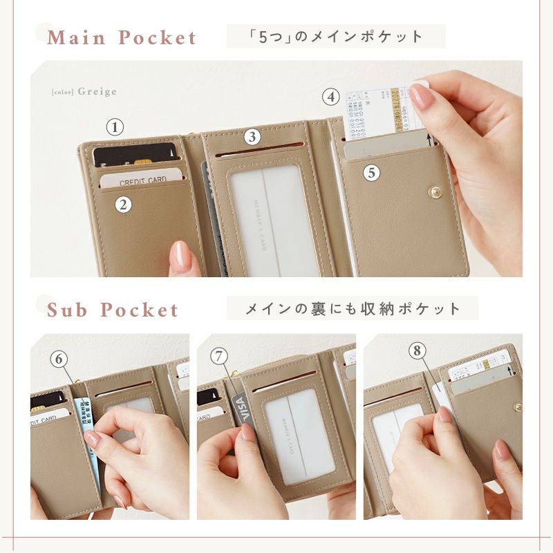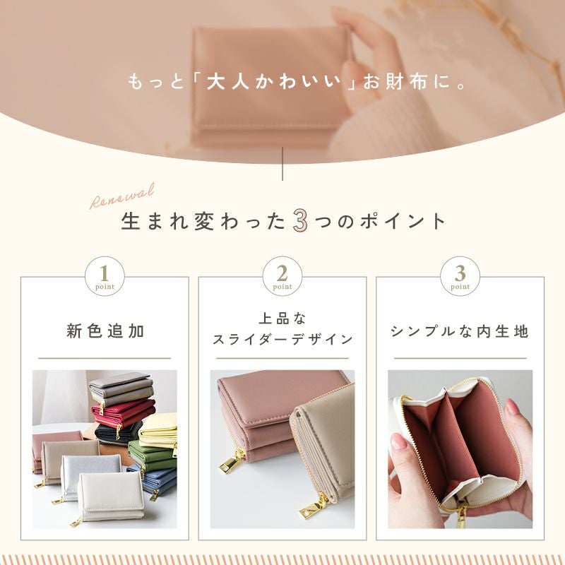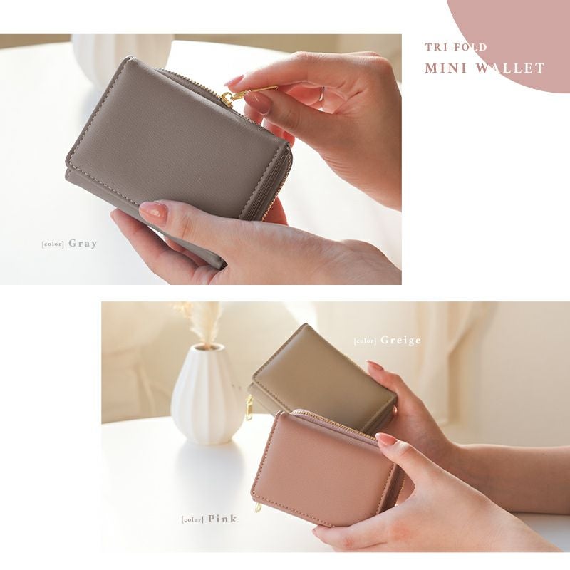 フェイクレザー三つ折りウォレット
